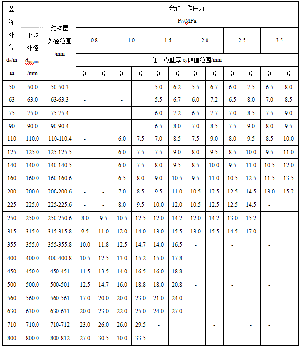 不同壓力等級(jí)管材的規(guī)格尺寸
